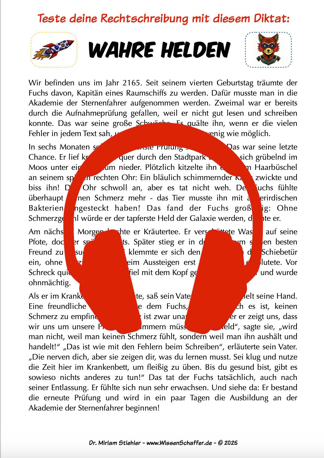Um gezielt an den eigenen Fehlerschwerpunkten zu arbeiten, empfehle ich in jedem Fall das Heft "Fehlerhelden". Damit behalten Sie den Überblick über die Lernfortschritte Ihres Kindes - egal ob daheim, in der Schule oder Lerntherapie. Zu den persönlichen Fehlerschwerpunkten bietet die Fehlerhelden-Reihe zusätzlich als Downloads die zeitsparenden "Spalten Falten" Übungen an sowie Diktate, bei denen bestimmte Rechtschreibregeln intensiv vorkommen, aber andere schwierige Schreibungen nicht.