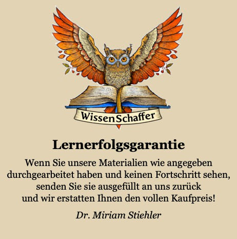 Wir wissen, was wir tun. Deshalb bieten wir eine Lernerfolgsgarantie auf alle zentralen Lernmaterialien. Wer sie wie angegeben sorgfältig durcharbeitet und dennoch keinen angemessenen Fortschritt bei seinem Kind feststellt, bekommt den Kaufpreis erstattet. So überzeugt sind wir von dem, was wir tun.